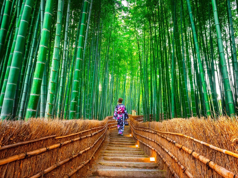- Laissez-vous envelopper par l’atmosphère presque irréelle de la forêt de bambous, avant de visiter le temple zen Tenryu-ji, classé à l’UNESCO, et ses jardins harmonieux.